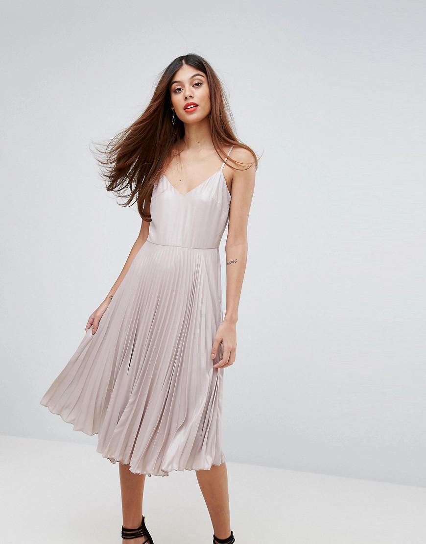Warehouse Synthetic Lame Pleated Cami Dress In Brown Lyst
